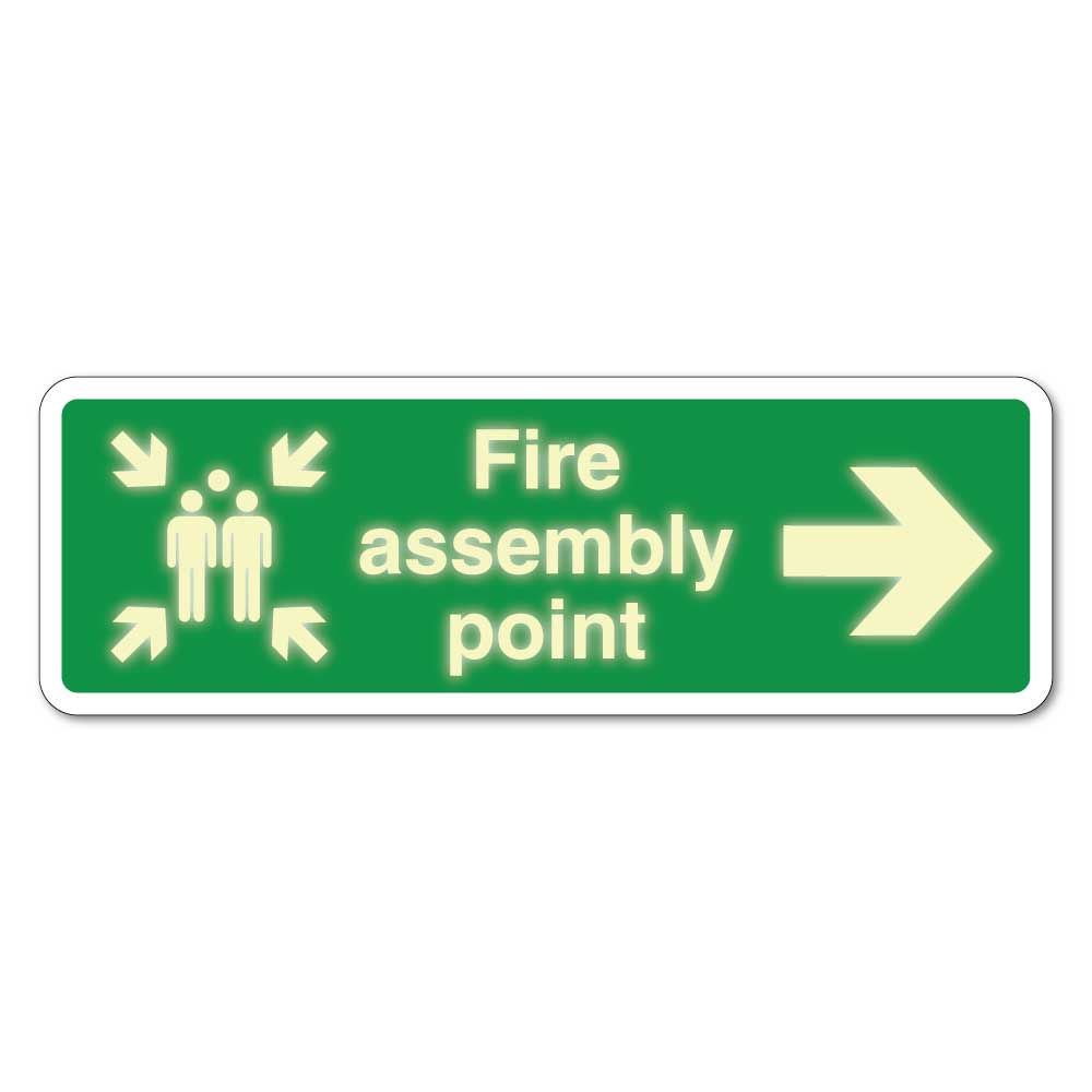 Glow in the Dark Fire Assembly Point Right Arrow Sign - 3mm Rigid Sign