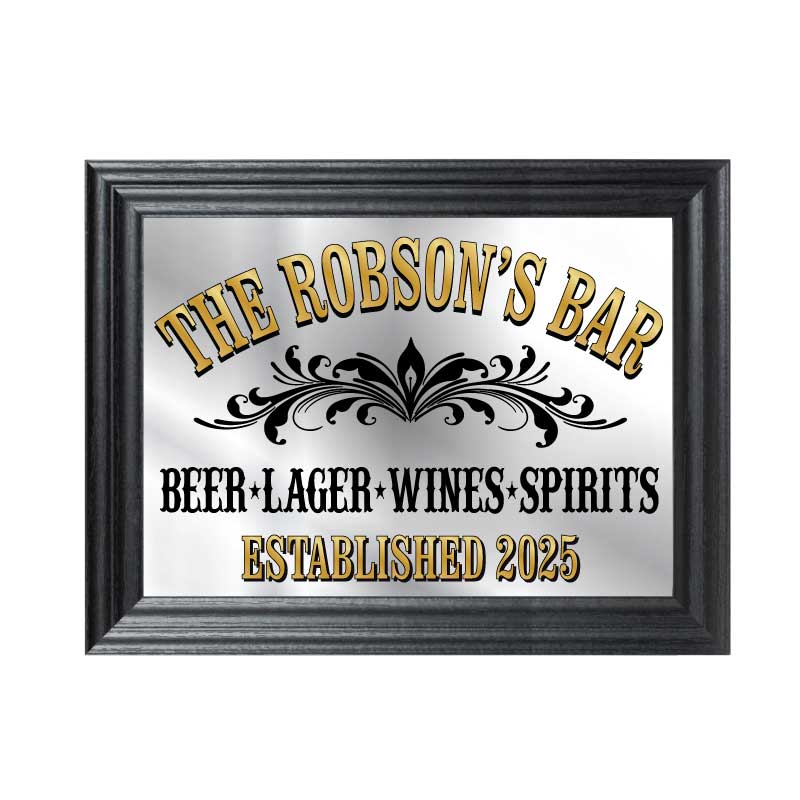 Personalised Vintage Style Bar Mirror in black frame